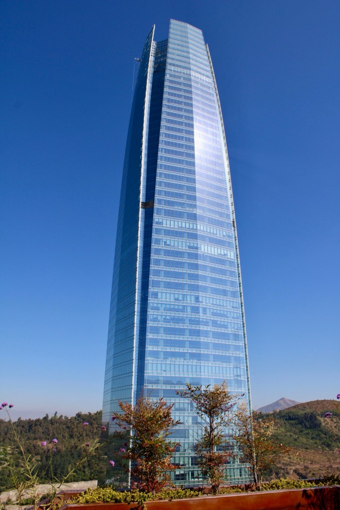Pictured is the view of Sky Costanera from our private balcony. You can visit their observatory on the 61st and 62nd floor!