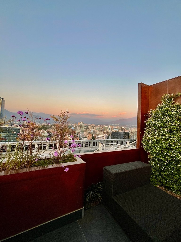 Upon arrival, we were upgraded to a penthouse suite with a huge private rooftop area overlooking the city, the Andes mountains, and the Sky Costanera. Our room was on the 25th floor. This upgrade was just one more reason to love Marriott Bonvoy and their rewards program.