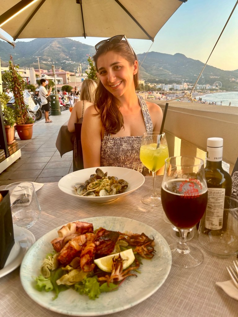 This restaurant had the best view and was right up the stairs from where we were sitting at the beach! We had delicious seafood and drinks at Porta Ossuna. The meal was great but the sunset was the star of the show!